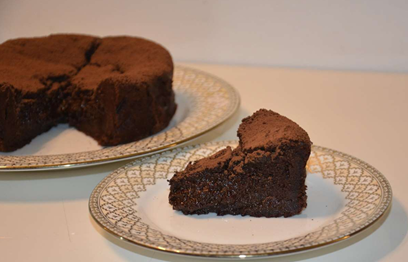 Indulge guilt-free: dense, fudgy chocolate cake, naturally sweetened with jaggery and studded with almond flour—a 100% gluten-free delight!